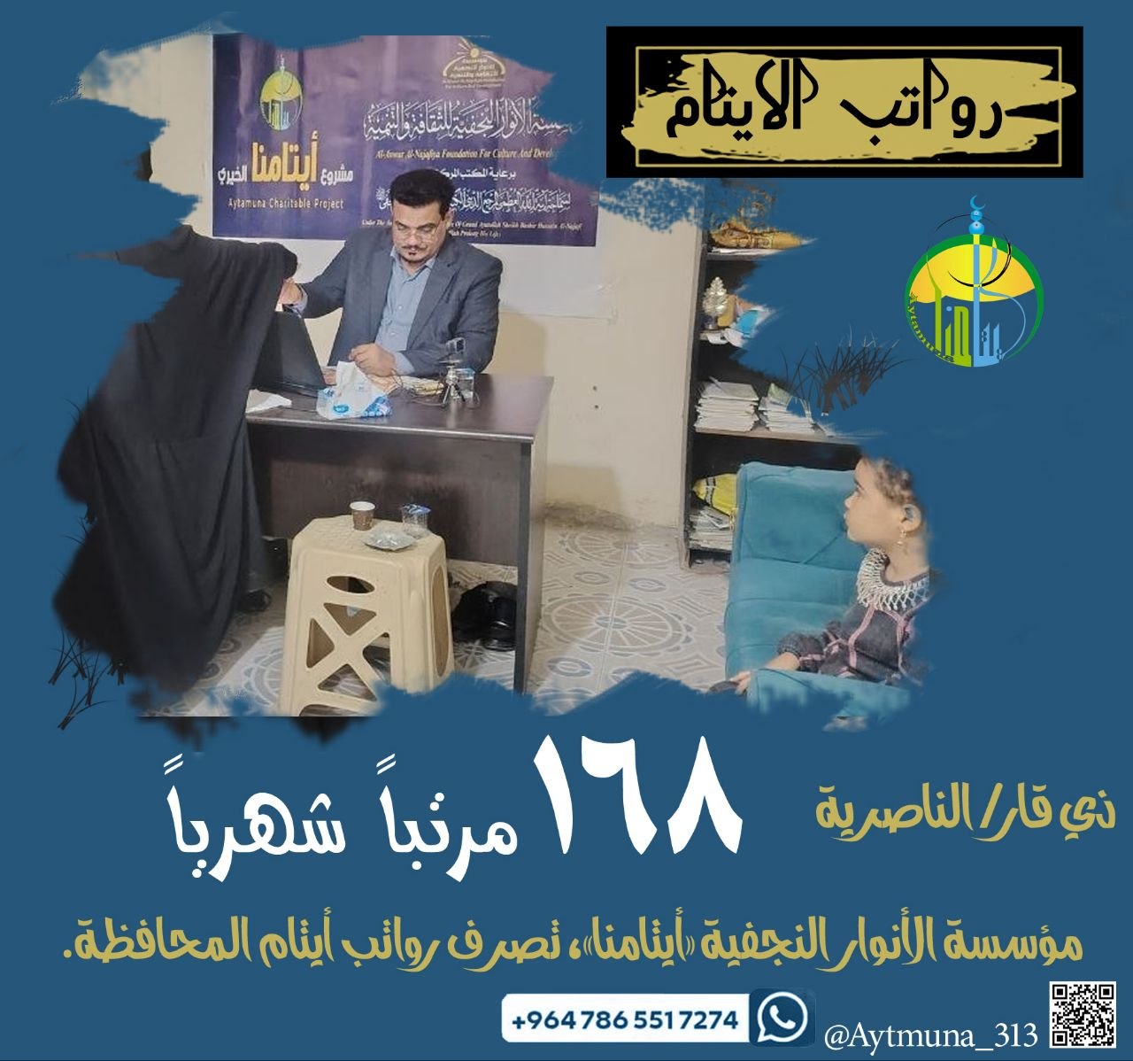 الأنوار النجفيَّة للثقافة والتنمية / فرع ذي قار، عن صرف رواتب شهريةٍ لعددٍ من